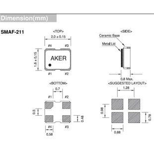 AKER晶振,SMAF−211晶振,藍牙專用晶振,小型SMD有源晶振,從最初超大體積到現在的7050mm,6035mm,5032mm,3225mm,2520mm體積,有著翻天覆地的改變,體積的變小也使產品帶來了更高的穩定性能,接縫密封石英晶體振蕩器,精度高,覆蓋頻率范圍寬的特點,SMD高速自動安裝和高溫回流焊設計,Optionable待機輸出三態輸出功能,電源電壓范圍:1.8V~5V,高穩定性,低抖動,低功耗,主要應用領域:無線通訊,高端智能手機,平板筆記本WLAN,藍牙,數碼相機,DSL和其他IT產品的晶振應用,三態功能,PC和LCDM等高端數碼領域,符合RoHS/無鉛.Aker成立于1990年,是一家全球性高科技公司,設計和制造各種頻率控制解決方案。以技術為導向的總部設在臺灣,我們通過全球分支機構和分銷網絡提供即時服務,以滿足客戶的滿意度。關注客戶的需求,Aker了解市場需求,為客戶提供全面的技術支持 - Total Solution。