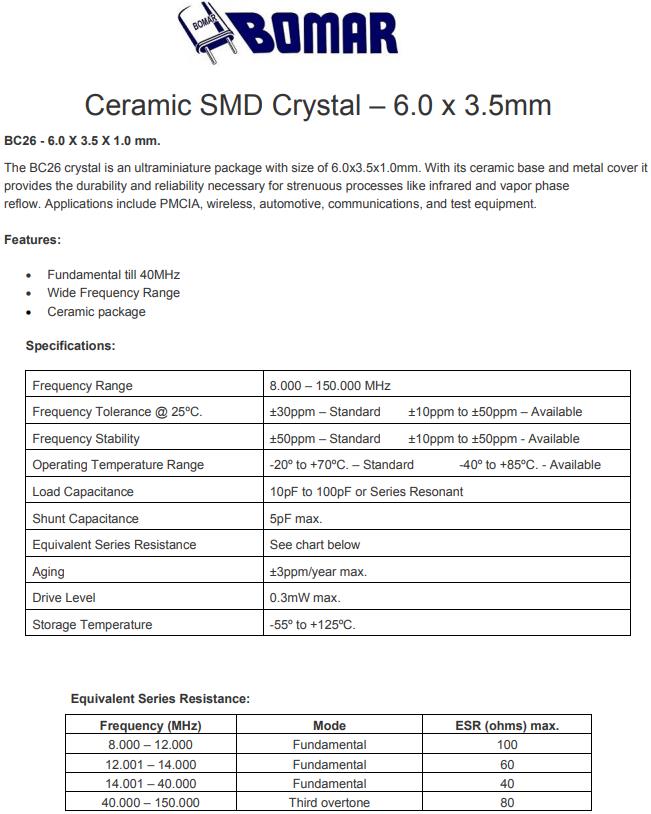 Bomar晶振公司不斷的推出滿足市場的Bomar石英晶振,石英晶體振蕩器,OCXO晶振等元件,為研發出更小封裝的進口Bomar石英晶振及具備低相位晶振,他們付出了極大的努力,并且研發出的產品通過ISO認證,質量有保障,價格合理.Bomar晶振,BC26晶振,BC26EFD120-10.000000晶振.