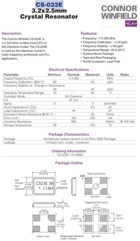 康納溫菲爾德晶振,CS-023E晶振,CS-023E-114.285M晶振
