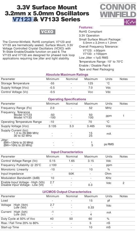 康納溫菲爾德晶振,V7123晶振,V7123-024.00M晶振