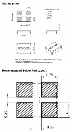 LFXTAL066742Reel IQXC-26 26.0MHz ±15ppm ±15ppm -20°C to 70°C 8.00pF