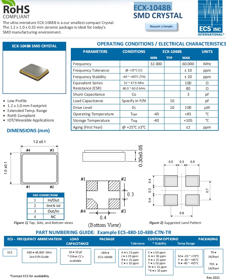 | ECS-480-8-48-RTN-TR | ECS晶振 | ECX-1048 | 48MHz | -40°C ~ 85°C |