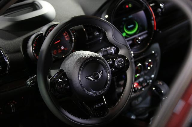 寶馬公司2015年6月24日在德國柏林推出的全新Mini Clubman中配備的方向盤和儀表板(圖)
