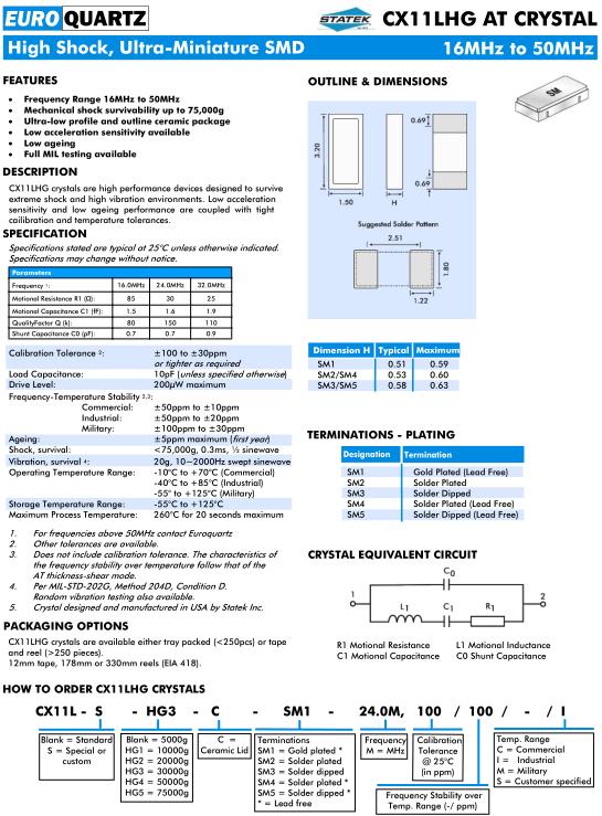 Euroquartz晶振,CX11LHGAT晶振,CX11L-S-HG3-C-SM1-24.0M,100/100/-I晶振