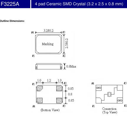 FCD-Tech晶振,F3225A晶振,F3225A-3050D303-24.000MHz晶振,超小型表面貼片型SMD晶振,最適合使用在汽車電子領域中,也是特別要求高可靠性的引擎控制用CPU的時鐘部分.低頻晶振可從7.98MHz起對應,小型,超薄型具備強防焊裂性,石英晶體在極端嚴酷的環境條件下也能發揮穩定的起振特性,產品本身具有耐熱,耐振,耐撞擊等優良的耐環境特性,滿足無鉛焊接以及高溫回流溫度曲線要求,符合AEC-Q200標準.