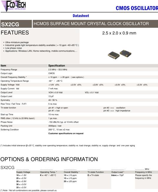 FCD-Tech晶振,SX2CG晶振,SX2CG-30K15E15pF-26.000MHz晶振,有源晶振,是指晶體本身起振需要外部電壓供應(yīng),起振后可直接驅(qū)動CMOS集成電路,產(chǎn)品本身已實(shí)現(xiàn)與薄型IC(TSSOP封裝,TVSOP封裝)同樣的1mm厚度,斷開時的消費(fèi)電流是15µA以下,編帶包裝方式可對應(yīng)自動搭載及IR回流焊接(無鉛對應(yīng))產(chǎn)品有幾種電壓供選1.8V,2.5V,3V3.3V,5V,以應(yīng)對不同IC產(chǎn)品需要.