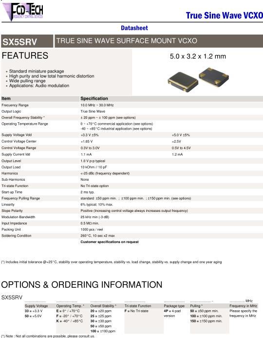 | Frequency Pulling Range | standard ±50 ppm min. ; ±100 ppm min. ; ±150 ppm min. (see options) | |