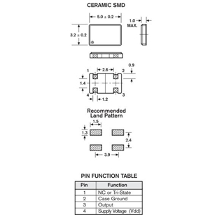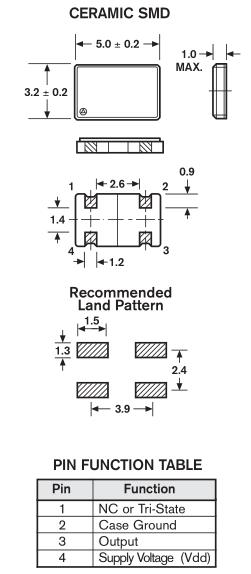 No Connect (Std.) Tri-State (option T) VIH: 2.2 V or Open Enables Output VIL: 0.8 V Disables Output Output Disable/Enable Time: 100 nS max. |