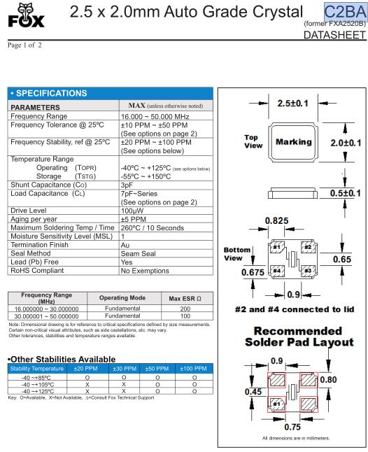 | FOX晶振規格 | 單位 | C2BA晶振頻率范圍 | 石英晶振基本條件 |
