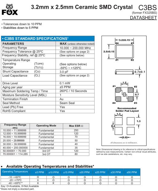 | FOX晶振規(guī)格 | 單位 | C3BS晶振頻率范圍 | 石英晶振基本條件 |