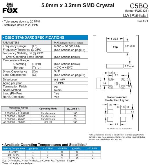 | FQ5032B-18.432 | FOX晶振 | C5BQ | MHz Crystal | 18.432MHz | ±30ppm |