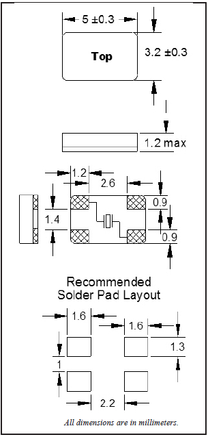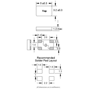 ??怂咕д馛5BQ,FQ5032B-20.000無源晶體 尺寸圖