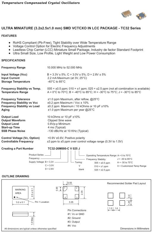 Fortiming晶振,TC32晶振,TC32-26M000-CV020J晶振