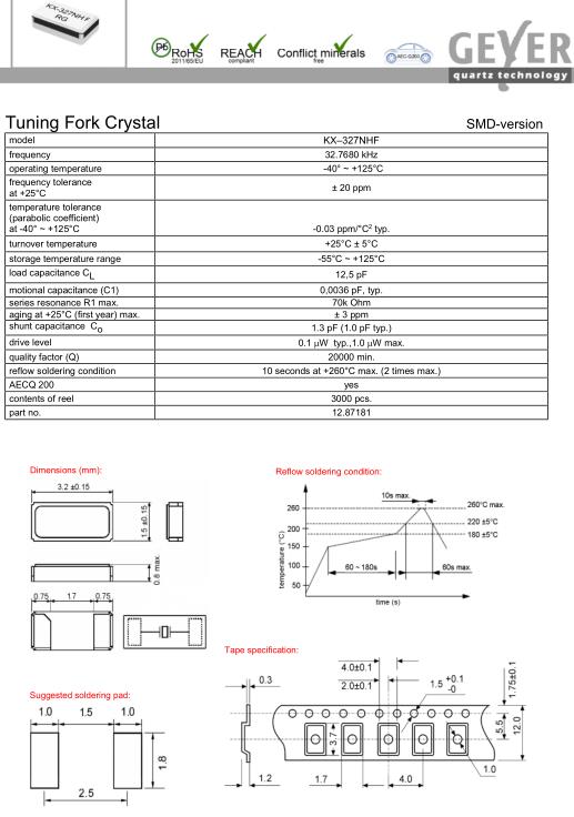 | GEYER晶振規(guī)格 | 單位 | KX-327NHF晶振頻率范圍 | 石英晶振基本條件 | |