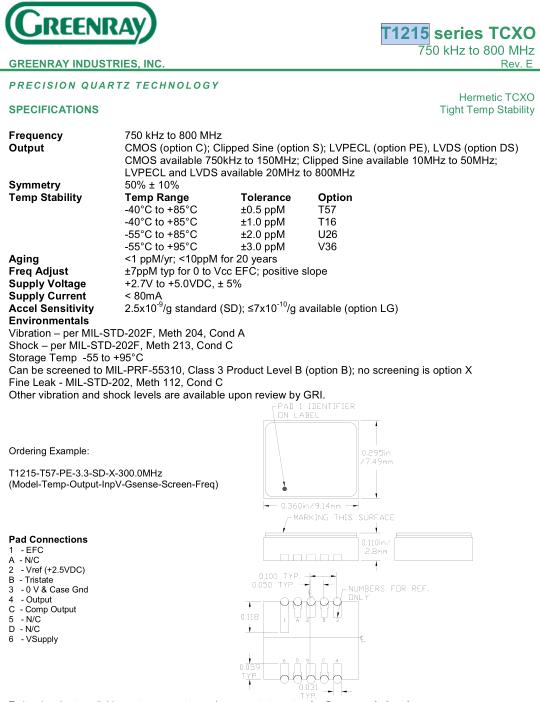 Greenray晶振,T1215晶振,T1215-T57-PE-3.3-SD-X-300.0MHz晶振