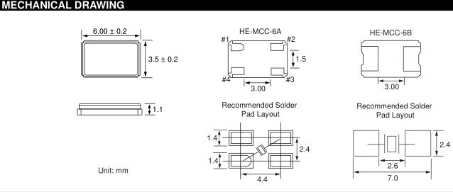 HEC晶振,HE-MCC-6晶振,壓電陶瓷晶振,貼片晶振本身體積小,超薄型石英晶體振蕩器,特別適用于有目前高速發展的高端電子數碼產品,因為晶振本身小型化需求的市場領域,小型,薄型是對應陶瓷振蕩器(偏差大)和普通的石英晶體振蕩器(偏差小)的中間領域的一種性價比較出色的產品.產品廣泛用于筆記本電腦,無線電話,衛星導航SSD,USB,Blu-ray等用途,符合無鉛焊接的高溫回流焊曲線特性.