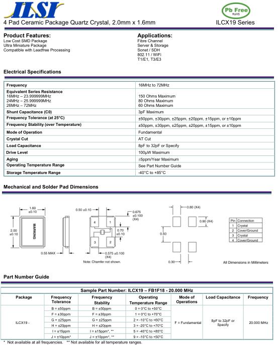 ILSI晶振,ILCX19晶振,ILCX19–FB1F18-20.000MHz晶振