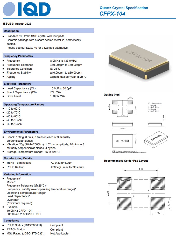 LFXTAL059537REEL,5032mm,CFPX-104,IQD石英晶體諧振器