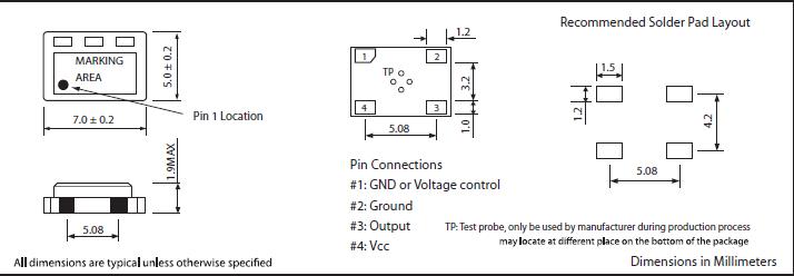 | Control Voltage (Vc) | 2.5±2.0 VDC for Vcc = 5 VDC; 1.65±1.5 VDC for Vcc = 3.3 VDC |