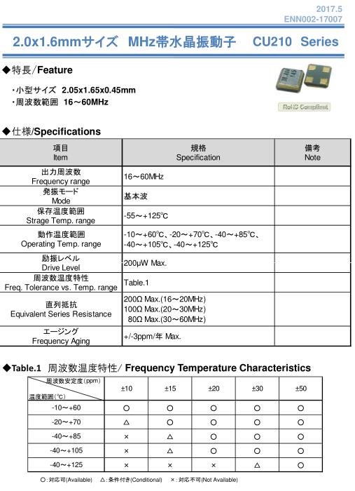 - 產品描述:納卡晶振,CU210晶振,2016mm無源晶振,貼片晶振本身體積小,超薄型石英晶體振蕩器,特別適用于有目前高速發展的高端電子數碼產品,因為晶振本身小型化需求的市場領域,小型,薄型是對應陶瓷振蕩器(偏差大)和普通的石英晶體振...