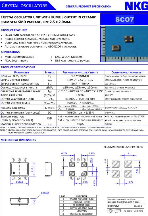 | Nominal frequency | F N | 1.0 ~ 160MHz | Fundamental or 3rd overtone design |