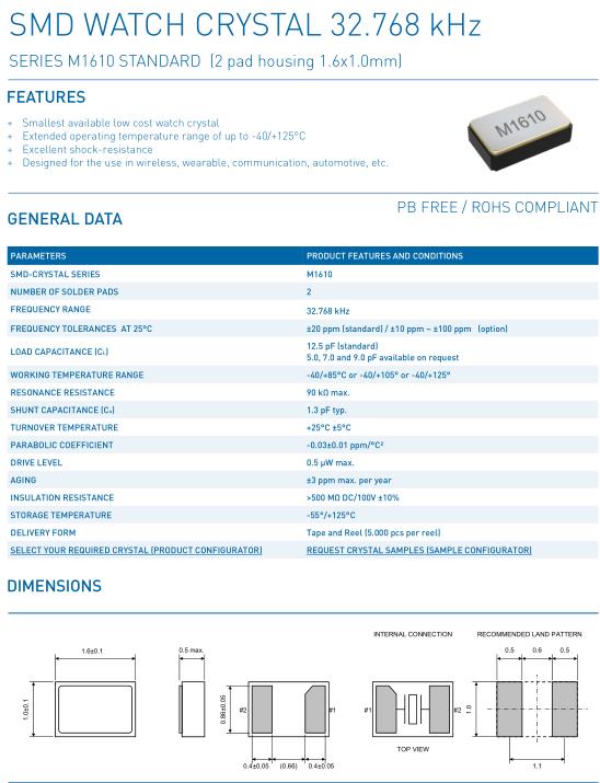PETERMANN晶振,M1610晶振,M1610-32.768kHz-±20ppm-12.5pF晶振