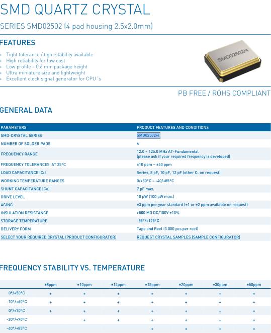 | SMD-CRYSTAL SERIES | SMD02502/4 |