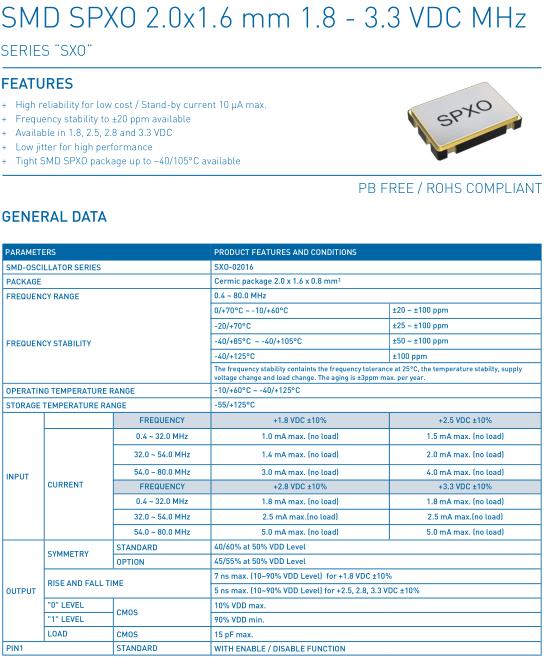 | SMD-OSCILLATOR SERIES | SXO-02016 | |||