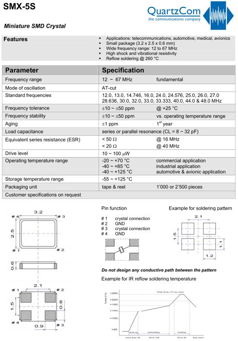 | QuartzCom晶振規格 | 單位 | SMX-5S晶振頻率范圍 | 石英晶振基本條件 |