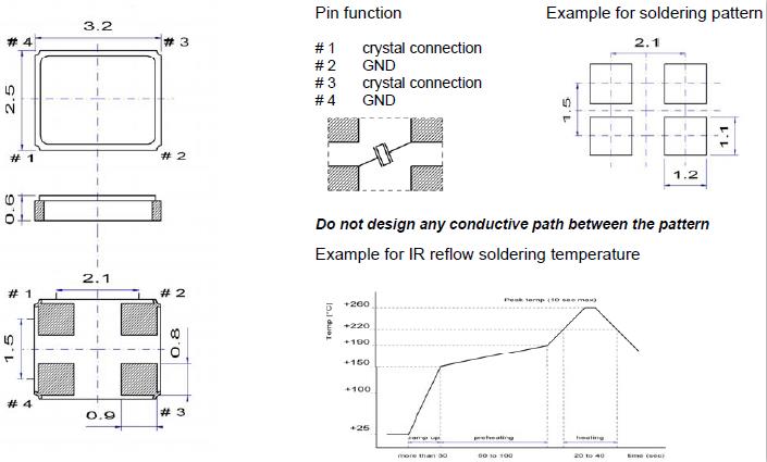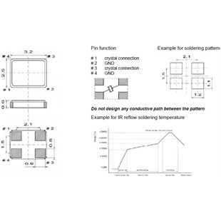 在一個不同擴張系數電路板(環氧玻璃)上焊接陶瓷封裝石英晶振時,在溫度長時間重復變化時可能導致端子焊接部分發生斷裂,請事先檢查焊接特性。QuartzCom晶振,SMX-5S晶振,3225mm晶振.