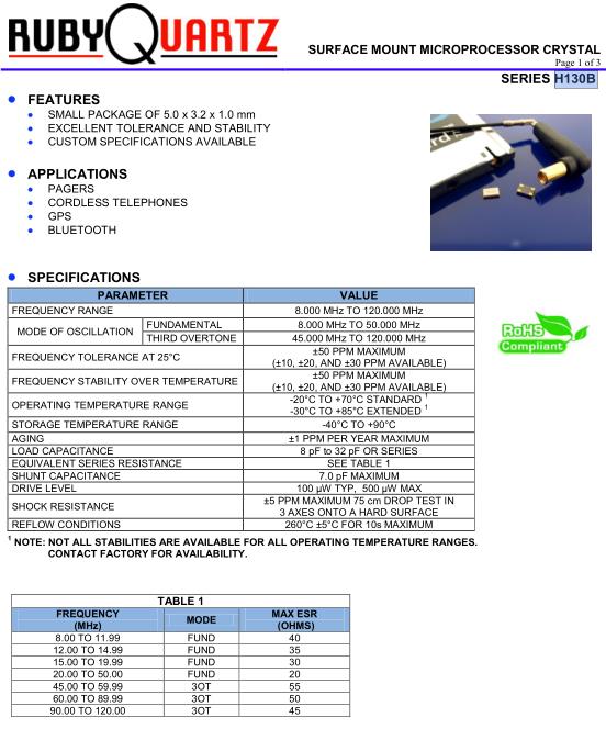 | FREQUENCY STABILITY OVER TEMPERATUR | ±50 PPM MAXIMUM | |
