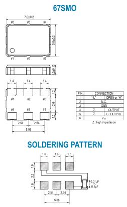 67SMO(A): ±100 ppm over -20゜C to +70゜C 67SMO(B): ±50 ppm over -20゜C to +70゜C 67SMO(C): ±30 ppm over -20゜C to +70゜C 67SMO(D): ±25 ppm over -20゜C to +70゜C 67SMO(E): ±20 ppm over -20゜C to +70゜C 67SMO(AW): ±100 ppm over -40゜C to +85゜C 67SMO(BW): ±50 ppm over -40゜C to +85゜C 67SMO(CW): ±30 ppm over -40゜C to +85゜C 67SMO(DW): ±25 ppm over -40゜C to +85゜C |