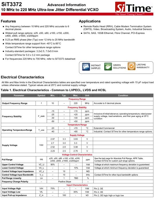 SiTime晶振,SiT3372晶振,SiT3372AC-1B2-33-H26.000000T晶振,小型SMD有源晶振,從最初超大體積到現(xiàn)在的7050mm,6035mm,5032mm,3225mm,2520mm體積,有著翻天覆地的改變,體積的變小也使產(chǎn)品帶來(lái)了更高的穩(wěn)定性能,接縫密封石英晶體振蕩器,精度高,覆蓋頻率范圍寬的特點(diǎn),SMD高速自動(dòng)安裝和高溫回流焊設(shè)計(jì),Optionable待機(jī)輸出三態(tài)輸出功能,電源電壓范圍:1.8V~5V,高穩(wěn)定性,低抖動(dòng),低功耗,主要應(yīng)用領(lǐng)域:無(wú)線通訊,高端智能手機(jī),平板筆記本W(wǎng)LAN,藍(lán)牙,數(shù)碼相機(jī),DSL和其他IT產(chǎn)品的晶振應(yīng)用,三態(tài)功能,PC和LCDM等高端數(shù)碼領(lǐng)域,符合RoHS/無(wú)鉛.