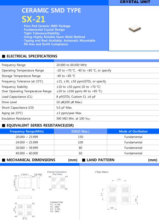 | Aging (at 25 ℃) | ±3 ppm/year Max. |
