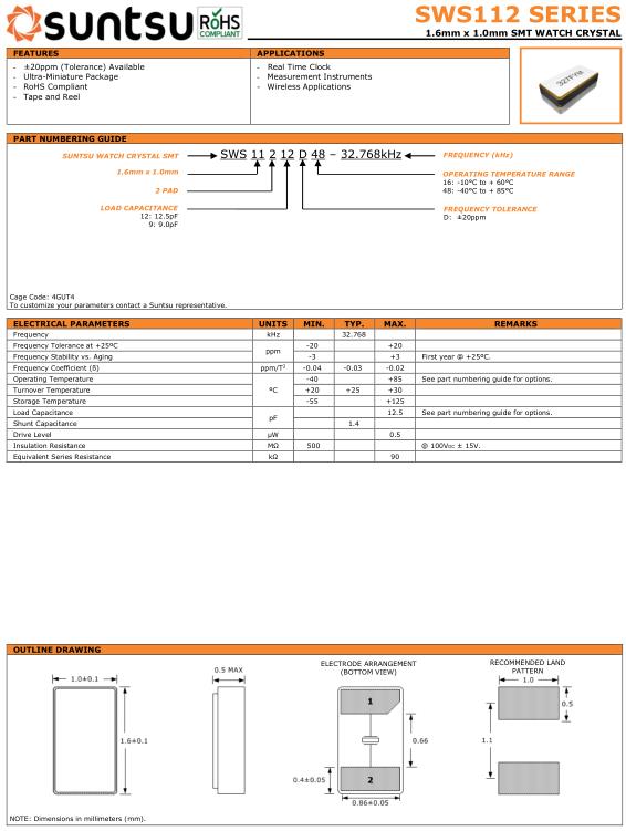 | Suntsu晶振規格 | 單位 | SWS112晶振頻率范圍 | 石英晶振基本條件 | |