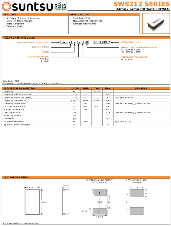 Suntsu晶振,SWS212晶振,SWS21212D48–32.768kHz晶振