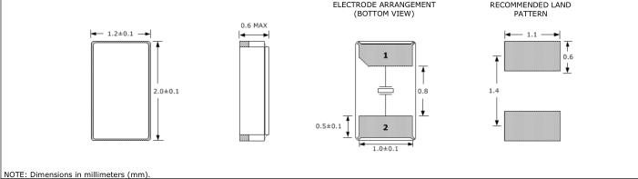 | 串聯電阻(ESR) | R1 | 如下表所示 | -40°C — +85°C, DL = 100μW |