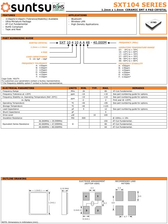 Suntsu晶振,SXT104晶振,SXT10410AA48-40.000M晶振