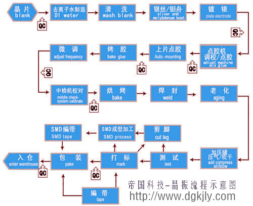 關于晶振,石英晶振,貼片晶振,32.768K,每天都在重復客戶和客戶講解著這些產品,原材料晶片到成品入庫,那么你知道在制作過程中有多少個程序嗎?有多少個環(huán)節(jié)是要QC檢驗的嗎?一起看看流程示意圖吧!