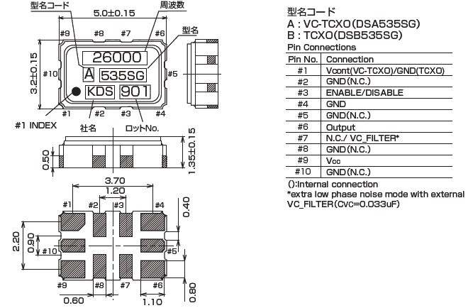 | 相位抖動 | 1.5ps max (fo offset : 12KHz~5MHz) |