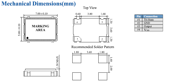 | Size/Dimension尺寸 | 7050封裝晶振 | 最小包裝數MPQ: | 1000 |