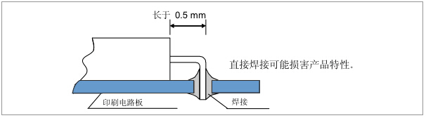 在一個(gè)不同擴(kuò)張系數(shù)電路板(環(huán)氧玻璃)上焊接陶瓷封裝產(chǎn)品時(shí),在溫度長(zhǎng)時(shí)間重復(fù)變化時(shí)可能導(dǎo)致端子焊接部分發(fā)生斷裂,請(qǐng)事先檢查焊接特性.