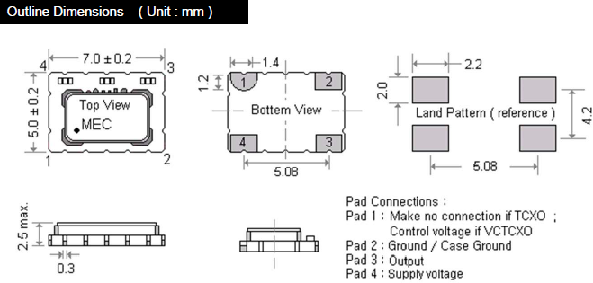 - 尺寸:7.0 x 5.0 x 2.5 mm