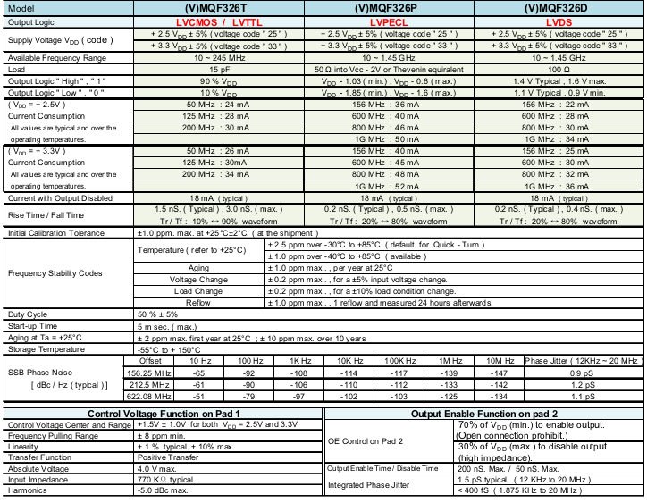 MERCURY晶振,溫補晶振,MQF326晶振,TCXO有源晶振