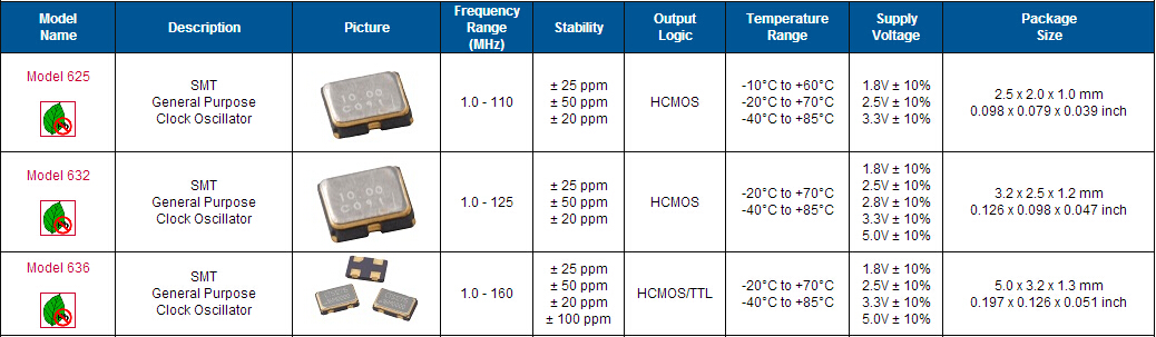 | 頻率公差25℃ | ±20 ppm, ±35 ppm, ±50 ppm |