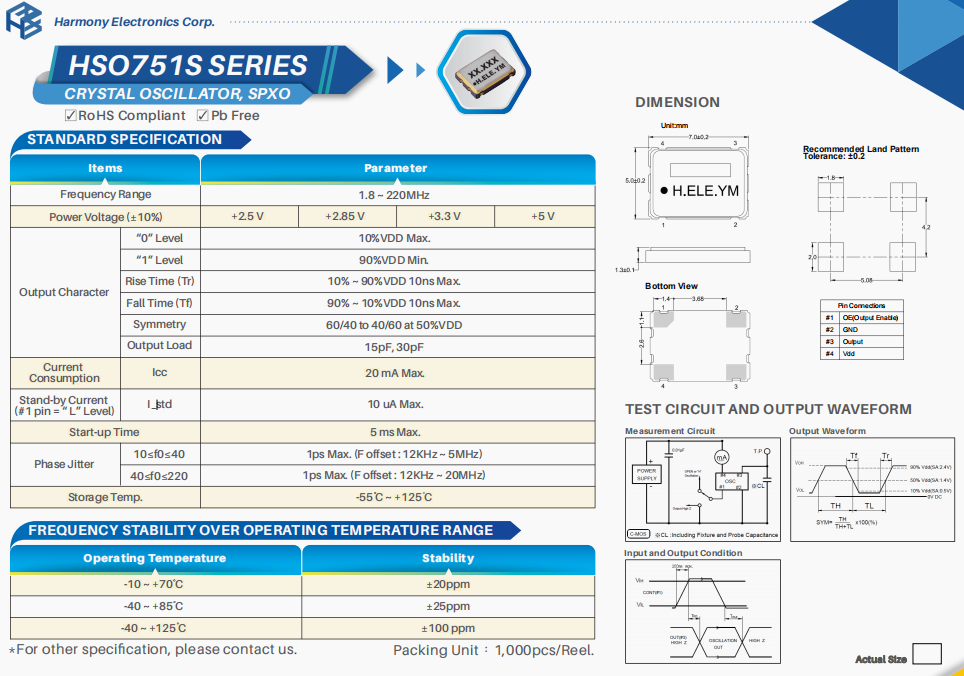 SSR010000K3CHE-T晶振,加高低損耗有源晶體,北斗衛星導航晶振,臺灣加高晶振公司,HELE晶振,高品質晶振,SMD晶振,石英晶振,HSO751S晶振,SSR010000K3CHE-T晶振,有源晶振,貼片晶振,高精度晶振,6G通訊設備晶振,無線傳輸晶振,局域網晶振,3225晶振,小體積晶振,低損耗晶振 ,北斗衛星定位模塊晶振,6G無線網晶振,高精度晶振。特點:微型超薄SMD產品尺寸(7.0×5.0×0.55 max)。特點:成熟的工業振蕩器封裝。三態函數。網絡和基站應用的通用解決方案。