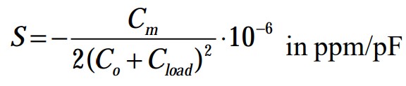 現在你知道如何計算負載電容 電路呈現給晶體,你應該選擇什么負載電容?在回答這個問題之前,你需要知道晶振中心頻率對負載的靈敏度 電容。這稱為微調靈敏度S,由下式給出: