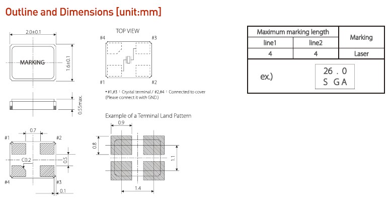 - 尺寸:2.0x1.6x0.55mm